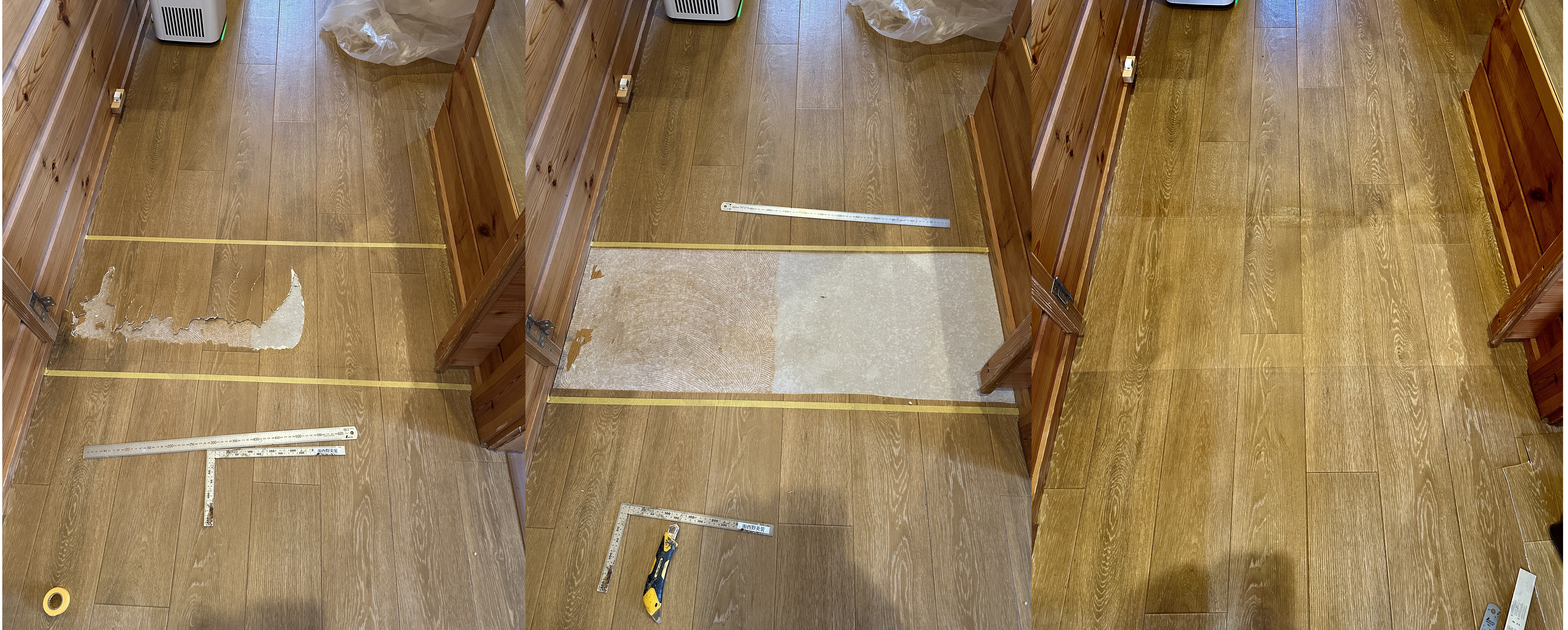 貸事務所の原状回復工事で、床の長尺塩ビシートの貼り替えをしました。